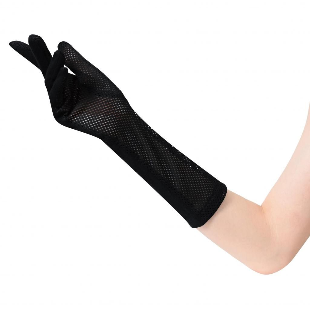 UV-3221 アームカバー ブラック メッシュセミロング 丈短(おたふく手袋社製)[M便 1/2]